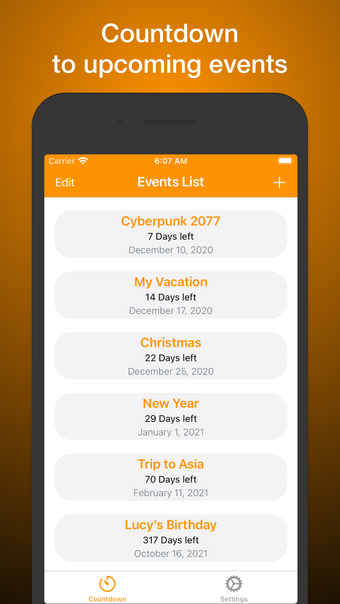 هل تبحث عن طريقة بسيطة وسهلة الاستخدام لتتبع الأحداث الهامة والمحطات الرئيسية في حياتك؟ لا تبحث بعيدًا عن تطبيق Smart Events Countdown! هذا التطبيق المجاني لأجهزة iPhone، المطور من قبل Dmytro Vynokurov، مثالي لأي شخص يرغب في البقاء منظمًا وعدم تفويت أي تاريخ مهم.